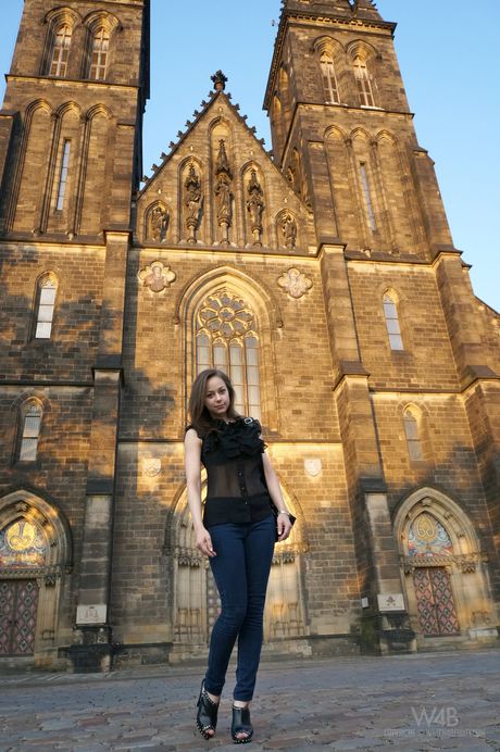 Skinny teen Darisha exposes her big tits and poses in a public place