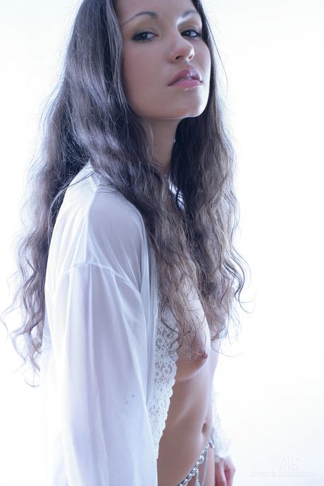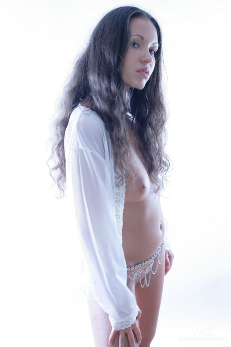 Skinny teen Erika shows her tiny tits and shaved vagina in the nude