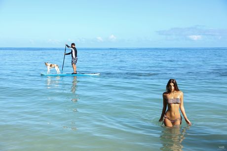 Slim teen Maria exposes her body and toys her pussy on the beach