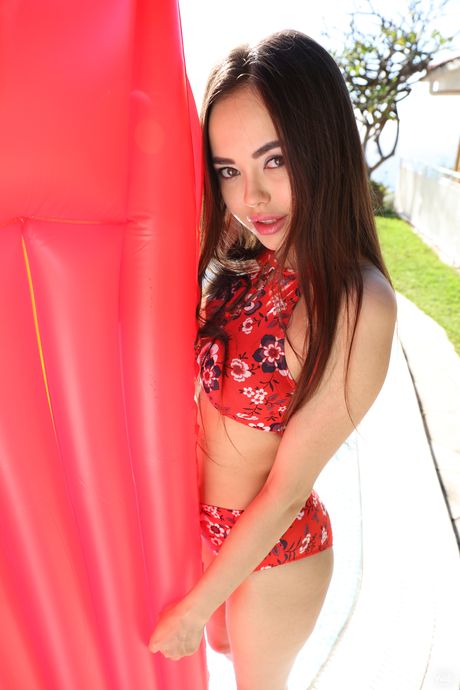 Svelte teen Li Moon shows her nice tits and ass while posing in a pool