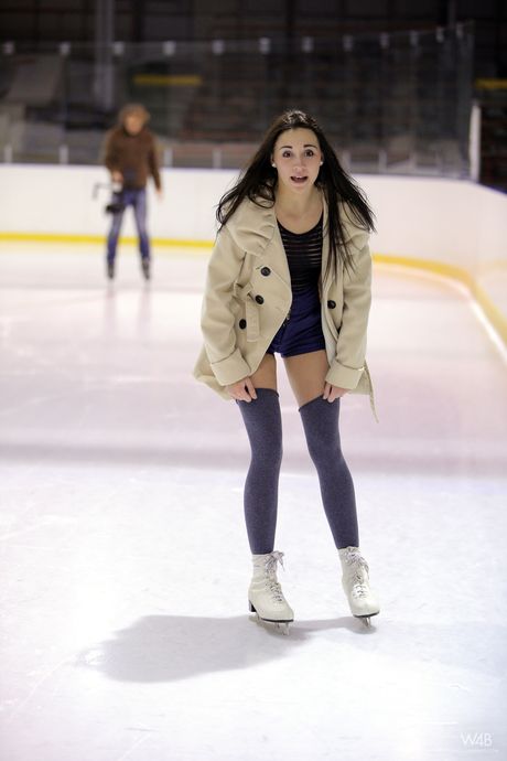Thin teen Andys shows her small tits and masturbates on the ice rink
