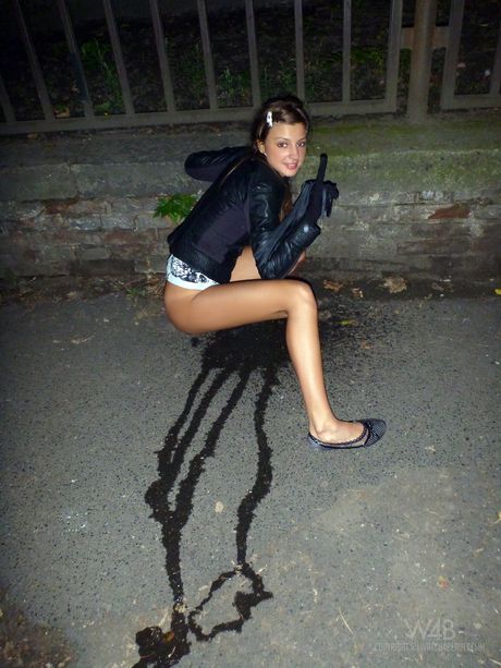 Two teenage girls pee on the sidewalk in the middle of the day
