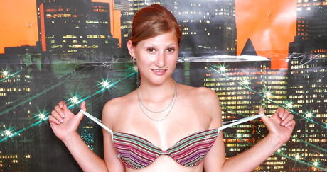 Wet And Puffy: Adorable cutie Bambi in sexy underwear denudes big tits and jerks off