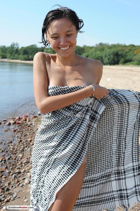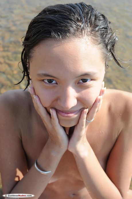 Goddess Nudes: Adorable teen Rita strips and poses naked in the water