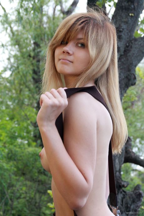 Erotic Beauty: Alluring teen Agni A strips naked on a sandy beach and shows her big tits