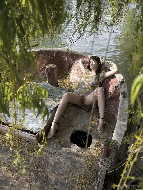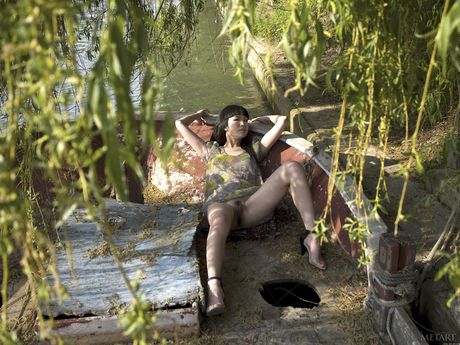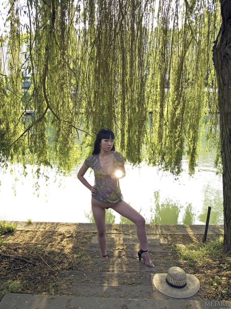 Met Art: Asian teen Wang A strips naked in the backyard & shows her hot body