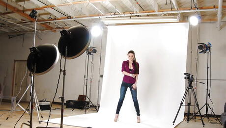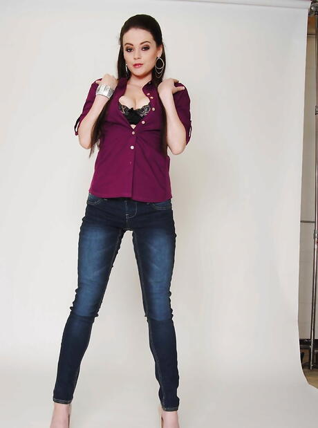 Baby Got Boobs: Attractive american cutie Tessa Lane in tight jeans baring big boobs and jerking off