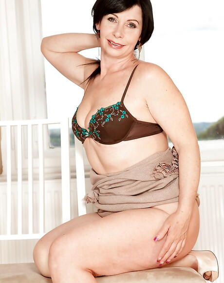 40 Something Mag: Attractive dark hair older Lilly denudes tiny tits and masturbates with dildo