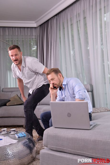 Porn World: Blonde babe Rebecca Volpetti gets double fucked by two men in a bedroom