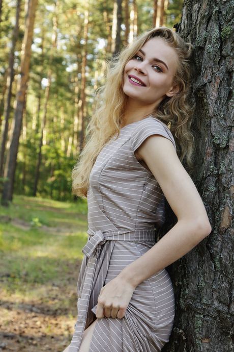 Met Art: Blonde beauty Ellie takes off everything on a blanket in the woods
