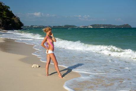 Stunning 18: Blonde chick Delilah G gets naked in a tidal pool while wearing sunglasses
