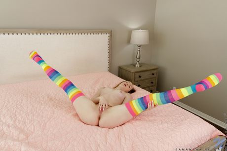 Nubiles: Blonde college girl Samantha Reigns masturbates with a vibrator in nylons
