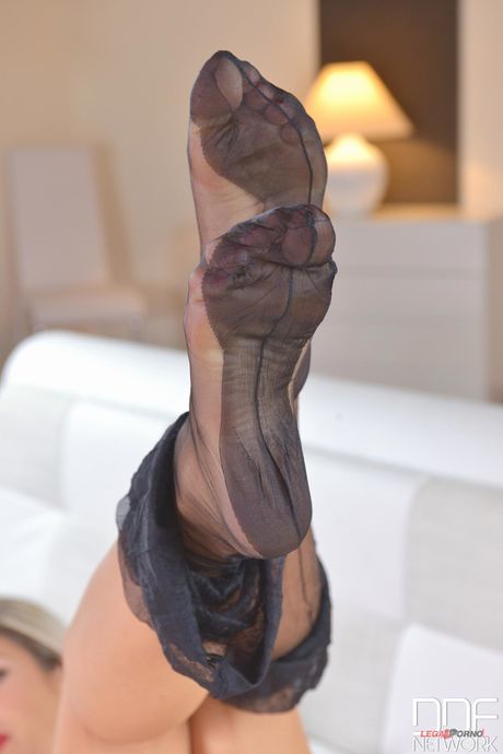 Porn World: Blonde French babe Eva Parcker toying her pussy in her sexy stockings