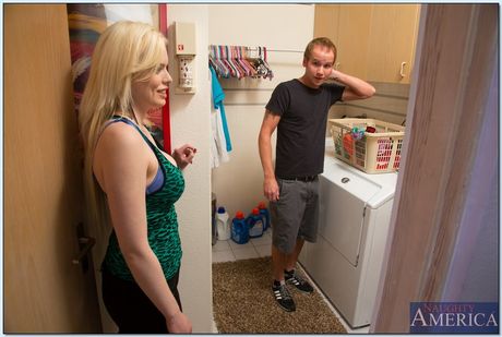 Naughty America: Blonde girlfriend Kristy Snow has sex with her man friend on a bed