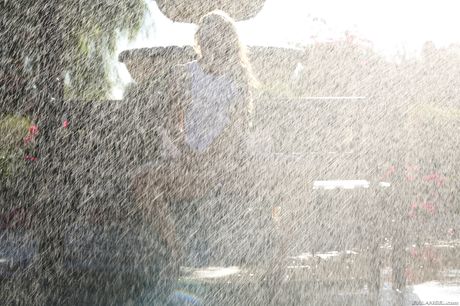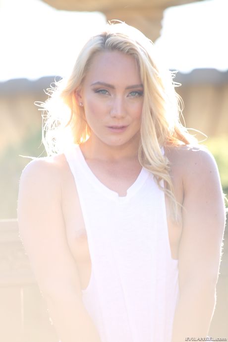 Evil Angel: Blonde pornstar AJ Applegate shows her big natural tits and ass outdoors