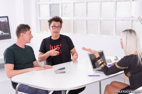 Private: Blonde secretary Julia Parker gets her shaved pussy licked out and fucked