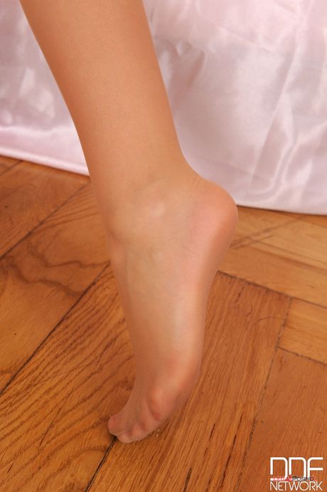 Porn World: Blonde Sofia shows her big tits and poses in her pink pantyhose