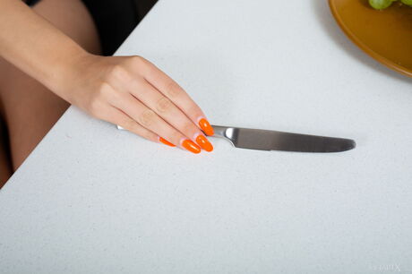 Met Art X: Blonde teen Casey removes a blindfold before fingering her pussy on a counter
