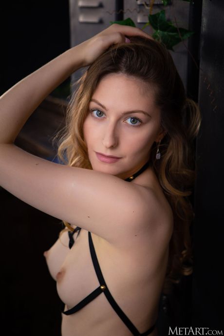Met Art: Blonde teen Katty Muss removes a mask and lingerie to get naked