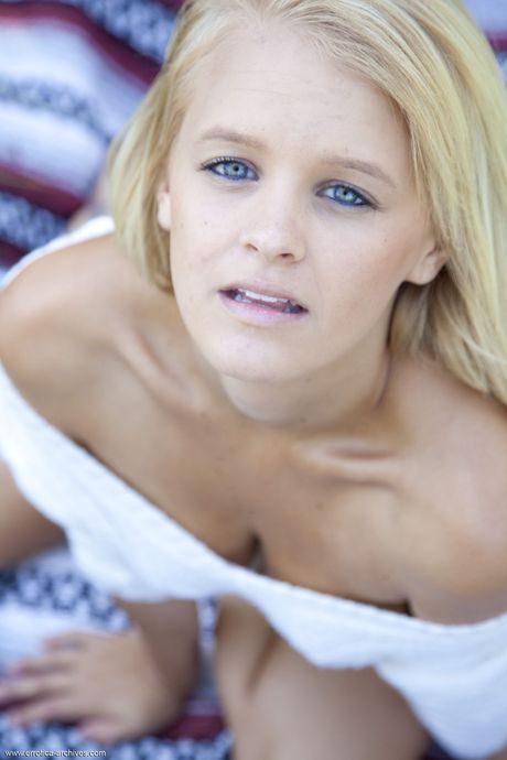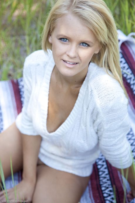 Errotica Archives: Blonde teen Marie bares herself on a patch of grass in the yard