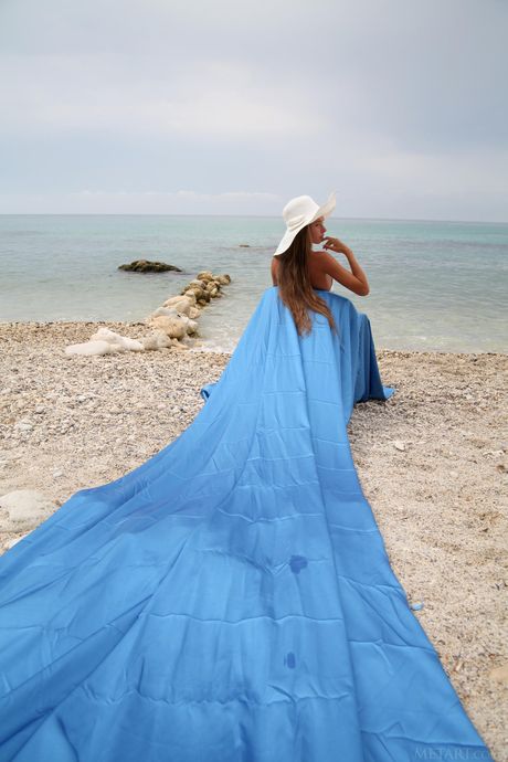 Love Hairy: Blonde teen Milena D removes a bra and panty set to pose nude on a beach