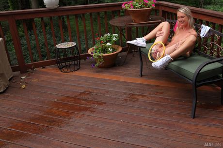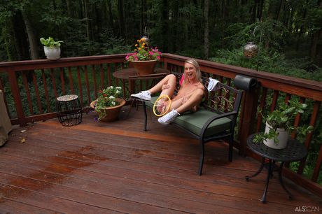 ALS Scan: Blonde teen Payton Avery gets naked before pissing on a patio