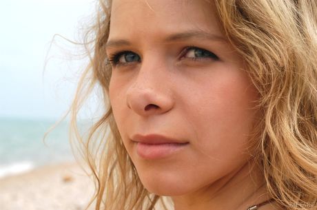 Met Art: Blonde teen Tasha A models naked on a rocky beach in the water