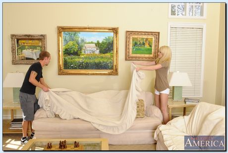Naughty America: Blonde teen Tiffany Fox seduces her girlfriends boyfriend on a couch