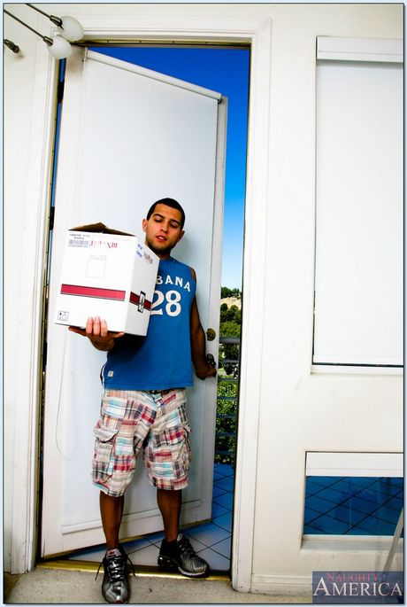Naughty America: Brunette cougar Daphne Rosen seduces a young man in a black dress