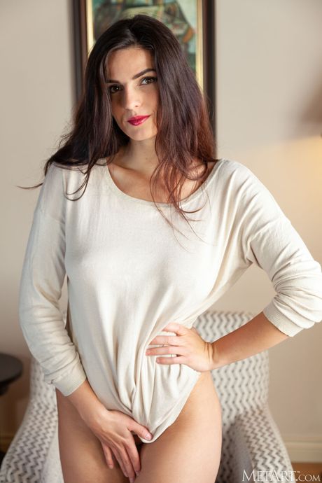 Met Art: Brunette teen Cynthia Hill removes a sweater to get naked boldly