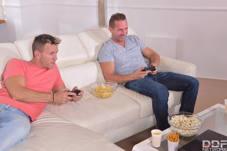 Porn World: Brunette teen Renata Fox gets double fucked by two men in a kitchen