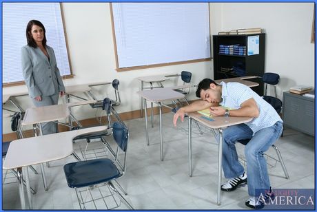 Naughty America: Busty teacher Kasandra Blue strips and shows her big ass and tits