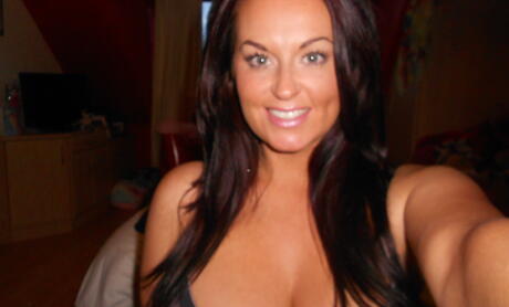 Sarah Nicola Randall: Charming brittish brunette milf Sarah Nicola Randall in sexy posing scene