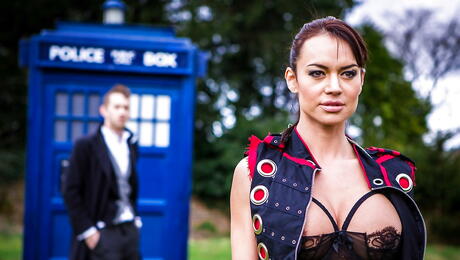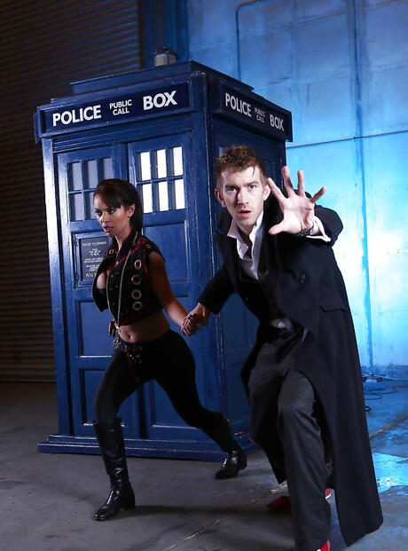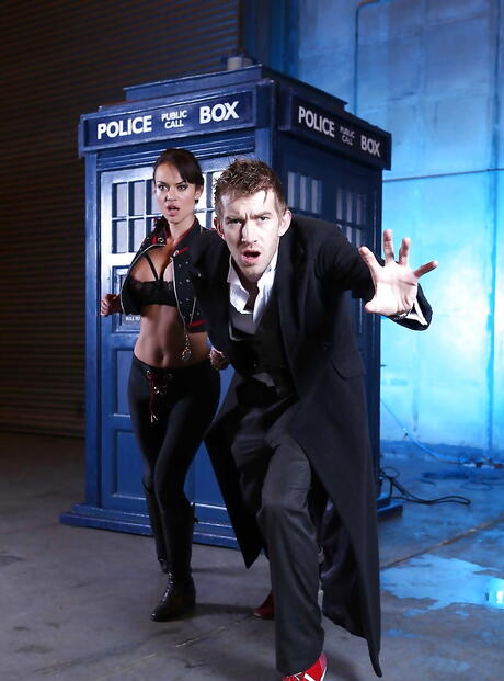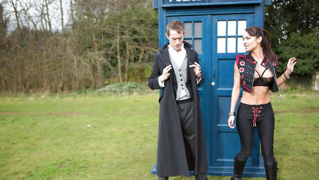 Pornstars Like it Big: Charming latina dark hair Franceska Jaimes in cosplay outfit robbing on huge dick and enjoys a cumshot on her face outdoor