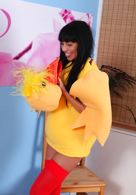 Wet And Pissy: Curious czech dark-haired Gina Devine in cosplay costume baring her ass and toying her snatch