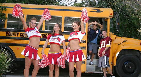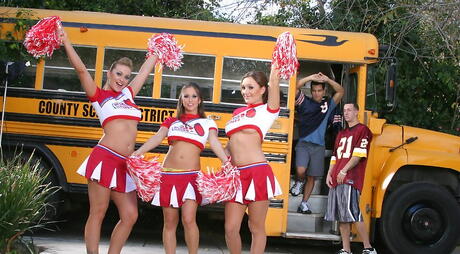 Big Tits At School: Curious women Rachel Roxxx, Jaclyn Case and Aline exhibits big titties and hot butts outside