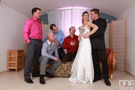 Porn World: Curvy cougar Jessica Fiorentino gets gangbanged by five hung men