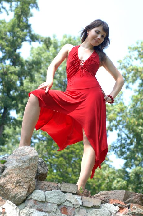 Met Art: Cute teen Viki B highlights her small tits & hairy cunt in a solo outdoor shoot