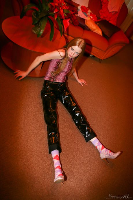 Stunning 18: Delicate teen Avril A poses naked in the night and shows her small tits & pussy