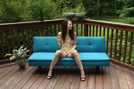 ALS Scan: Delicate teen Liz Jordan gets nude before toying her pussy on a futon