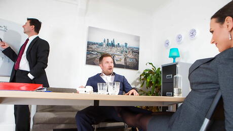 Big Tits At Work: Delightful czech bombshell Mea Melone in fancy skirt sucks on big shaft and takes a messy cum shot in office