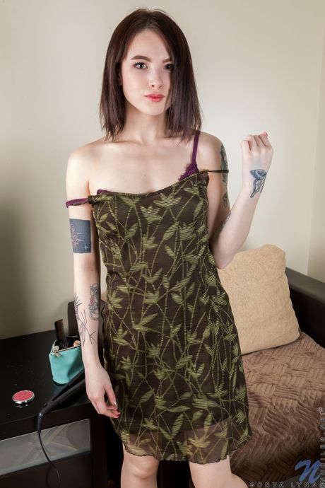 Nubiles: Delightful teen Sonya Lynn takes off her bra and panties before touching her pussy