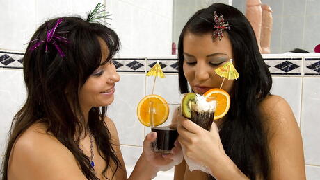 Anal Queen Alysa: Deluxe girls Alysa Gap and Karen kissing andfucking with sex toy in bathroom