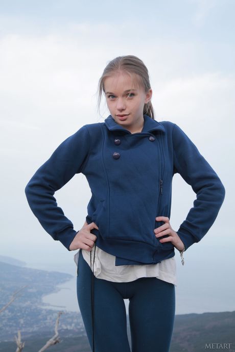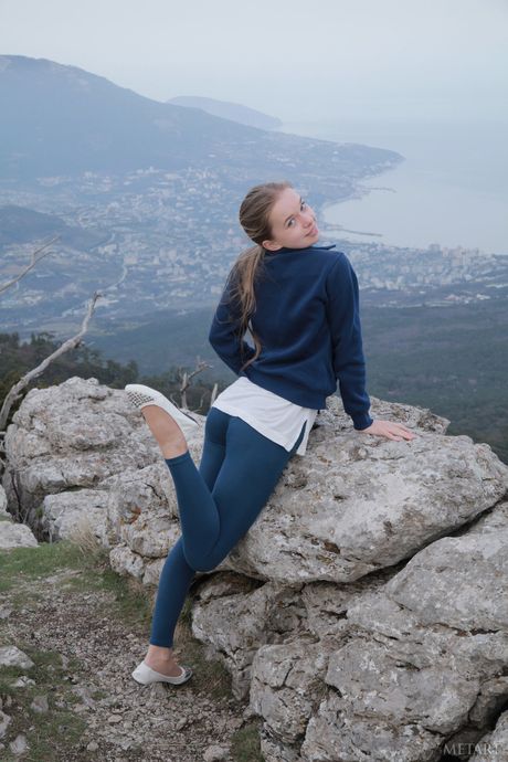 Met Art: Desirable teen Milena D strips & poses in her hat & stockings in a solo