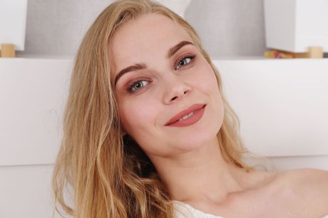 Met Art: Ellie gets naked and rubs a strawberry against her nipples to make them