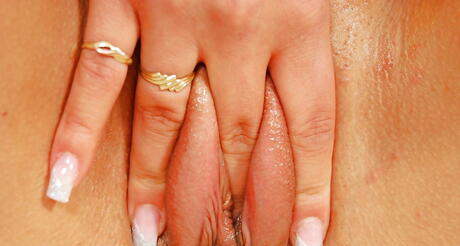 Wet And Puffy: Enchanting babe Justine showing big titties and toying her twat