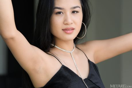 Love Hairy: Endearing teen Kahlisa removes a black dress and heels to get naked on her bed