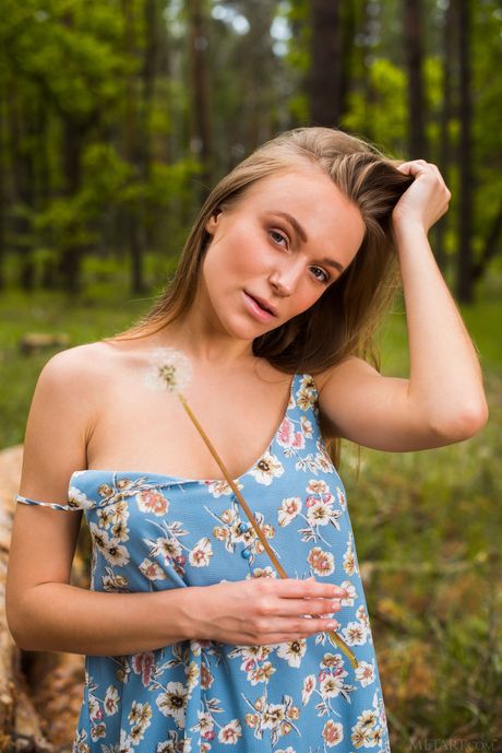 Met Art: Engaging teen Aislin gets naked in a forest clearing and shows her big tits & pussy