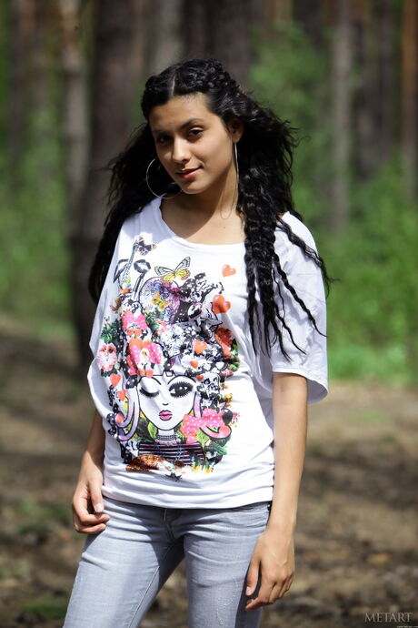 Met Art: Engaging teen Belinda A strips to her high heels & demonstrates her big tits outdoors