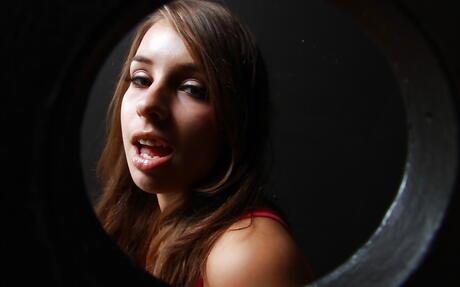 Mile High Media: Excellent dark hair babe Sophie Sutra in panties baring tiny tits and spreading her legs